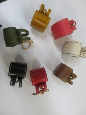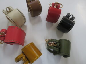 様々なカラーと革を使ったお洒落なキーホルダーです。